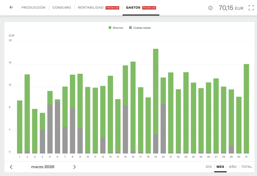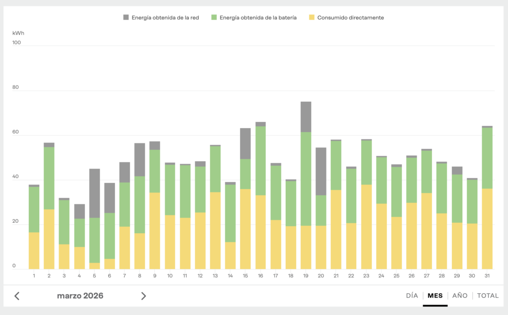 👉 El 98% de la energía que cogimos de la red fue por la noche