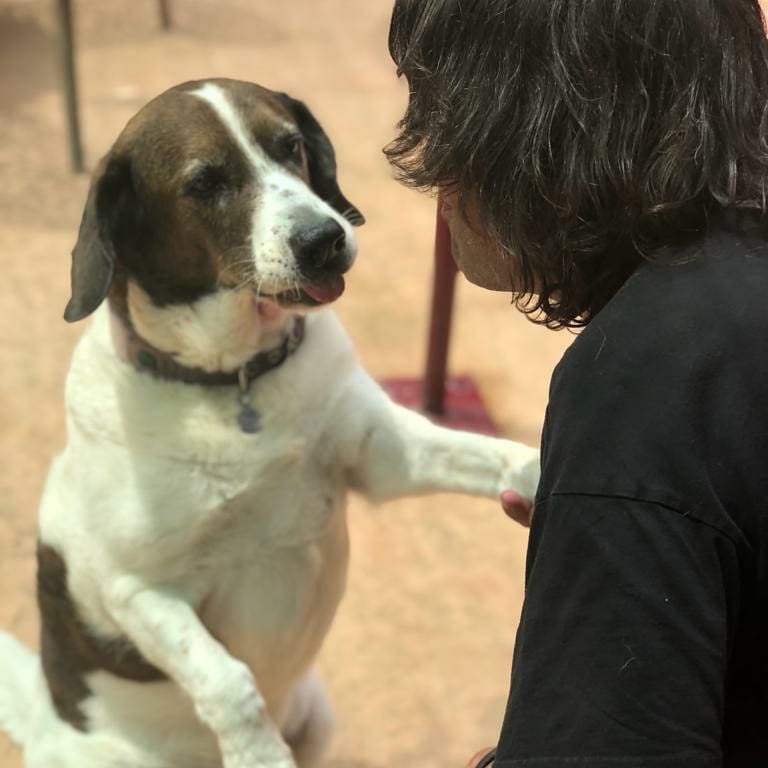 Mi trabajo aquí es simple: hacer felices a los humanos que nos visitan y, si puedo, enseñarles un poquito sobre la vida. Claro, no lo hago sola, porque tengo un compañero único: Markos, un mastín español con una pata coja, un corazón enorme y un carisma que derrite hasta las piedras.