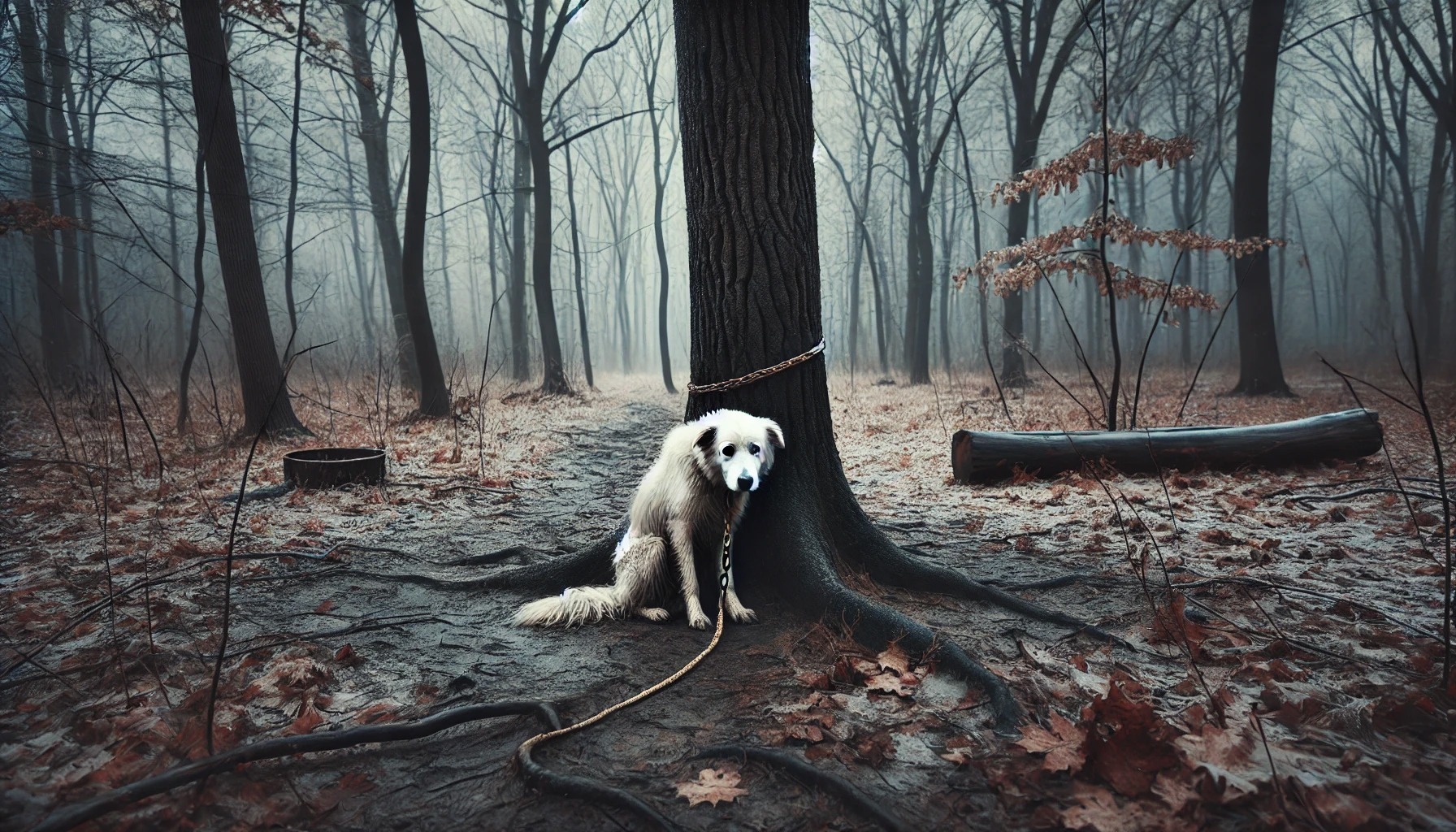 La família va conduir fins a un camí solitari al mig del bosc. Allà, el pare va estacionar i va portar Max fins a un arbre. Va lligar la corretja al tronc i, sense mirar-lo, va tornar al cotxe. Max bordava, confós, mentre veia com el vehicle desapareixia a la distància.
