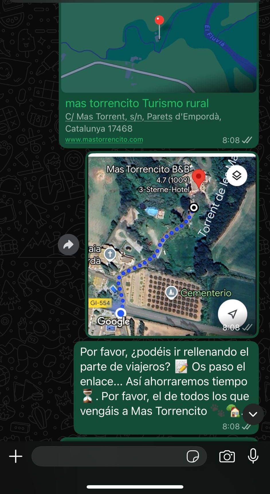 Ahir m’arriben uns francesos 🇫🇷, reserva d’última hora per Booking.com. Com a tots, els envio indicacions, mapa 🗺️, geolocalització 📍, advertiments ⚠️, codis de portes 🔐, wifi 📶… tot. I també, és clar, el check-in online. Es triga 3 minuts, se n’estalvien 10. Però ni cas.