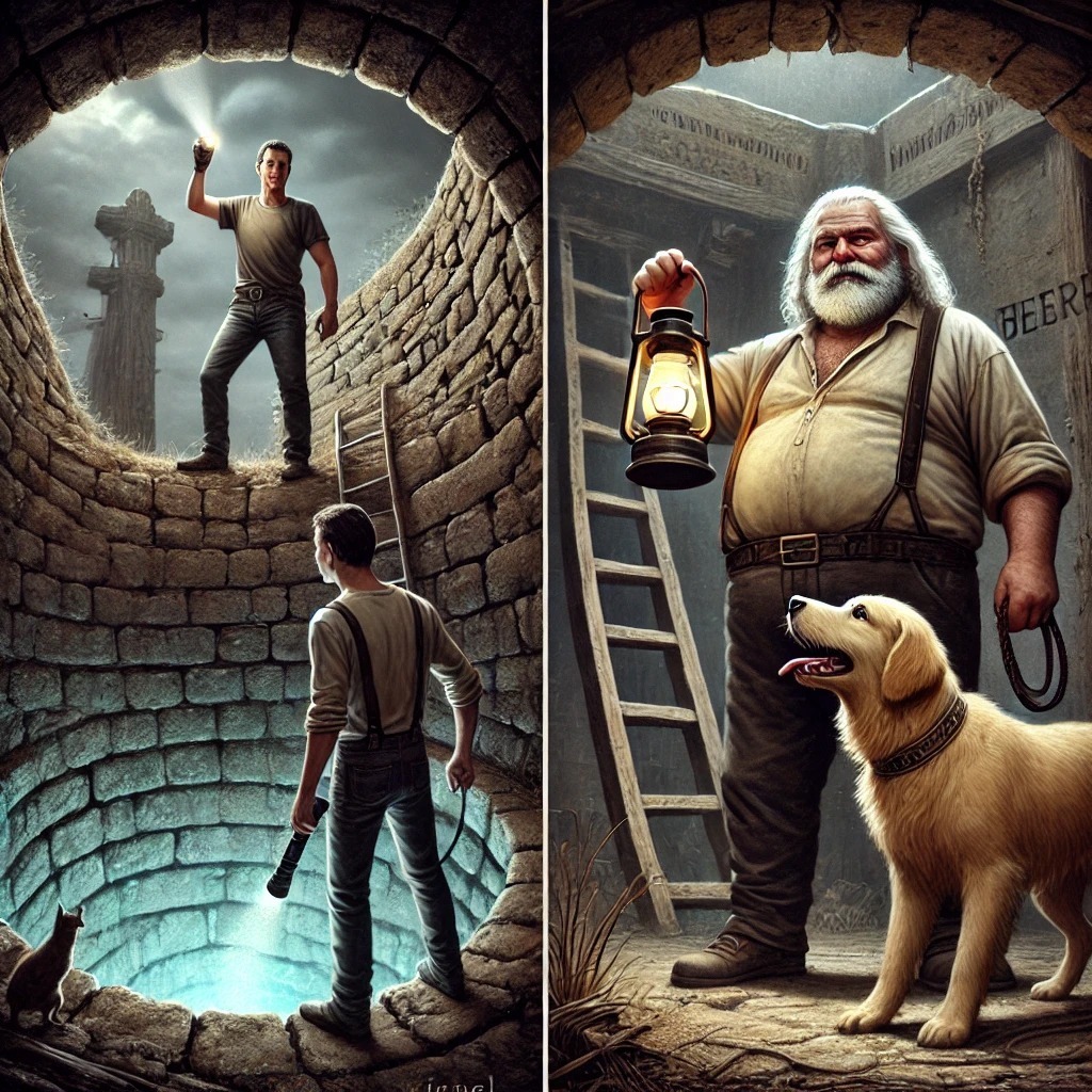 De regreso al exterior, seguimos el mapa hasta el pozo, oculto bajo una gruesa tapa de metal oxidada. Vicente no paraba de refunfuñar mientras yo retiraba la tapa con esfuerzo. Debajo, un túnel estrecho descendía en la oscuridad. El olor a tierra húmeda y hierro era abrumador.